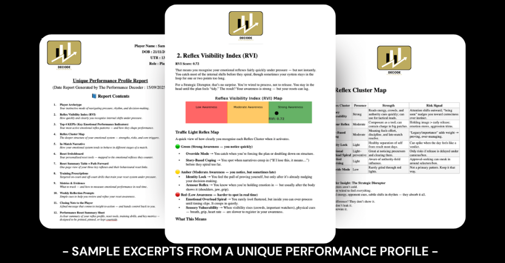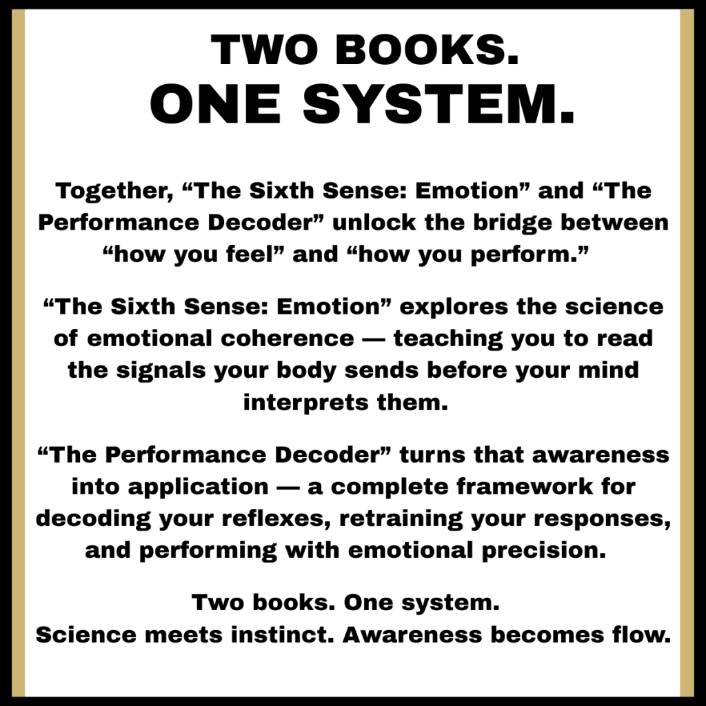 The Performance Decoder system turns awareness into action — Start by decoding your reflexes, then learn how to regulate, retrain, and integrate emotional precision into your game — Self-awareness becomes coherence and coherence becomes flow.
