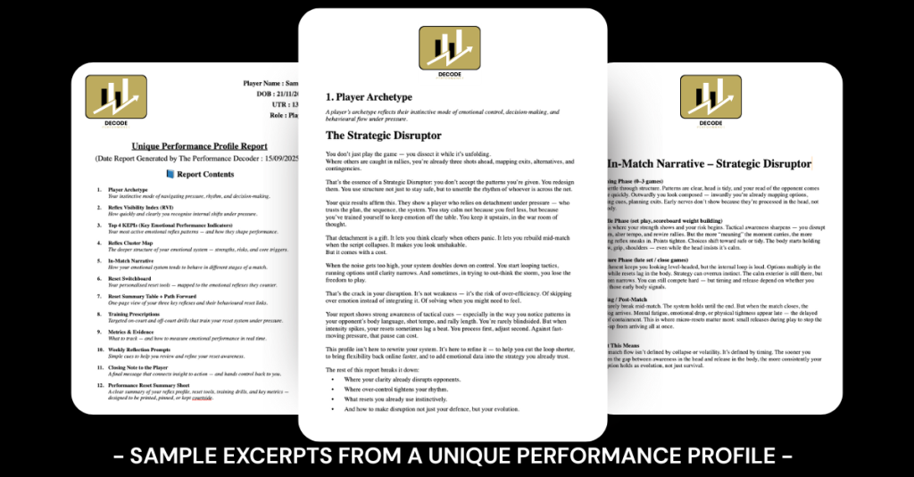 Inside, you’ll find a clear, structured readout of your emotional performance patterns: