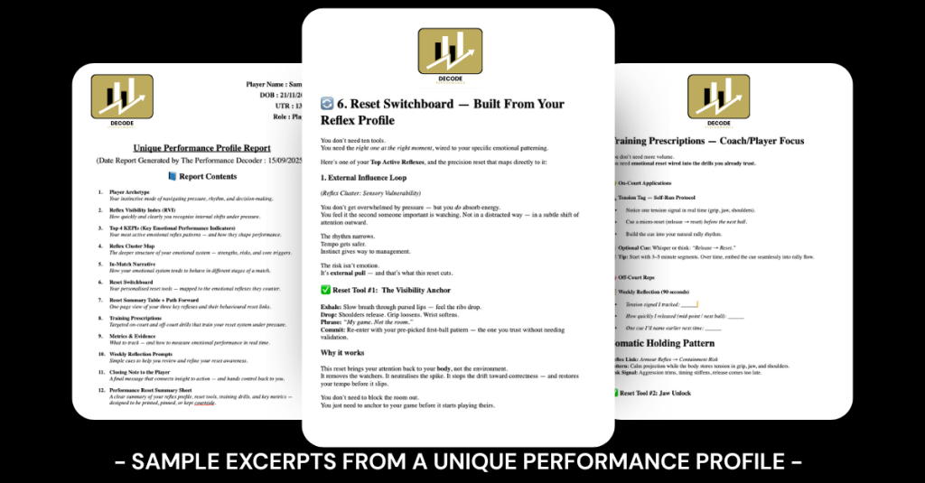 Coaches get insight into emotional reflexes that affect rhythm, decision-making, and momentum.